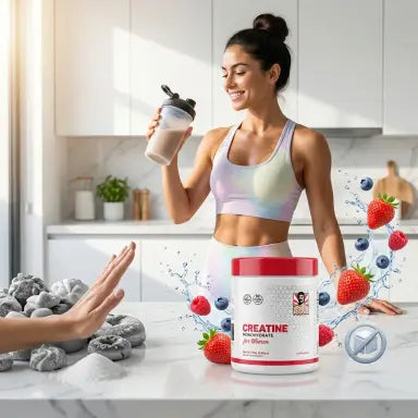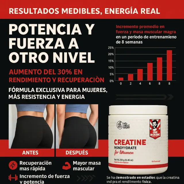 Nuestra creatina amplifica la fuerza de tu entrenamiento. Si no entrenas duro para esculpir tu cuerpo, simplemente no funcionará. Es ciencia, no magia.